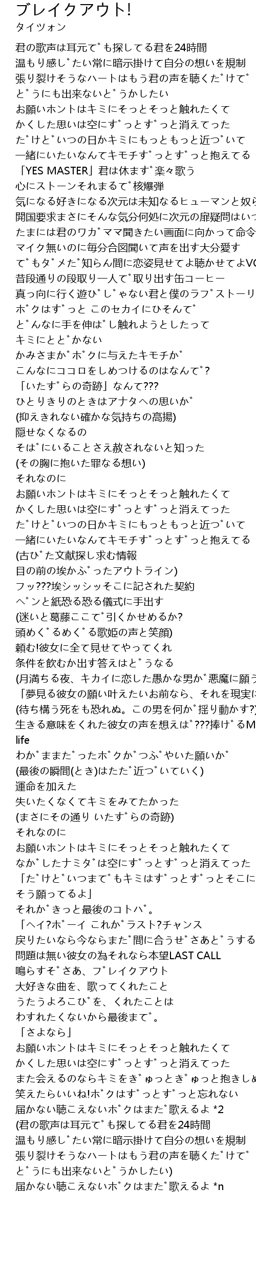 | [01:23.920] | 気になる好きになる次元は未知なるヒューマンと奴らのボーダーライン |