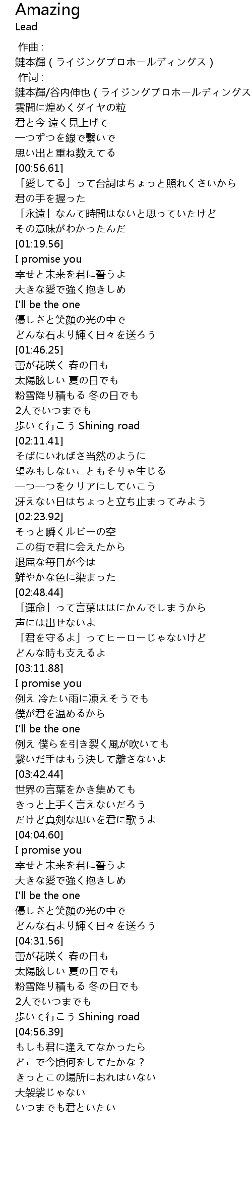 | [00:01.000] | 作词 : 鍵本輝/谷内伸也(ライジングプロホールディングス) |