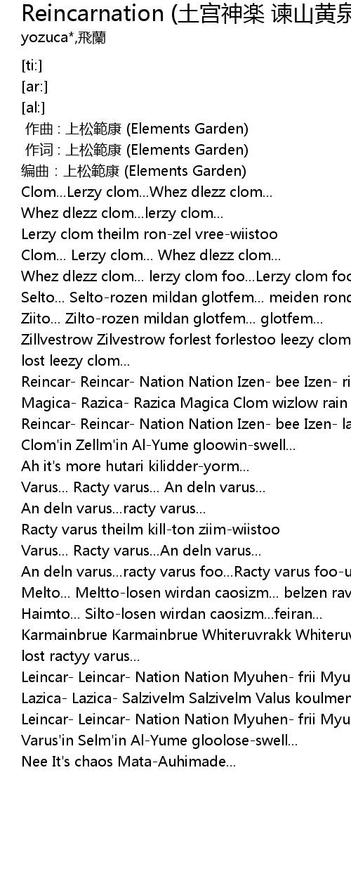 | [01:30.50] | Reincar- Reincar- Nation Nation Izen- bee Izen- laclomto |
