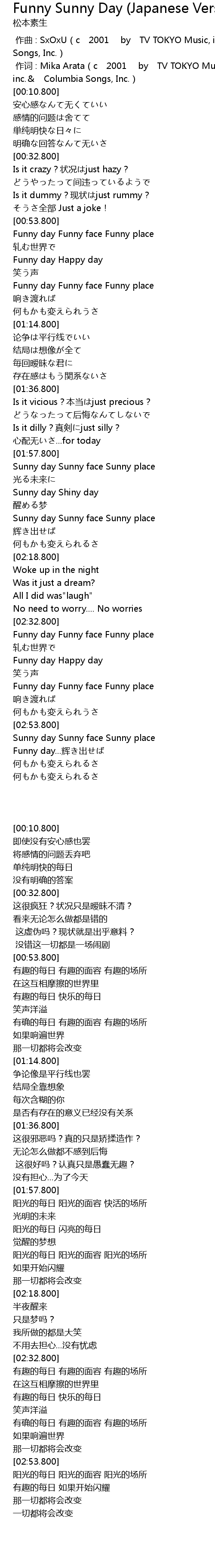 | [02:54.800] | Sunny day Sunny face Sunny place |