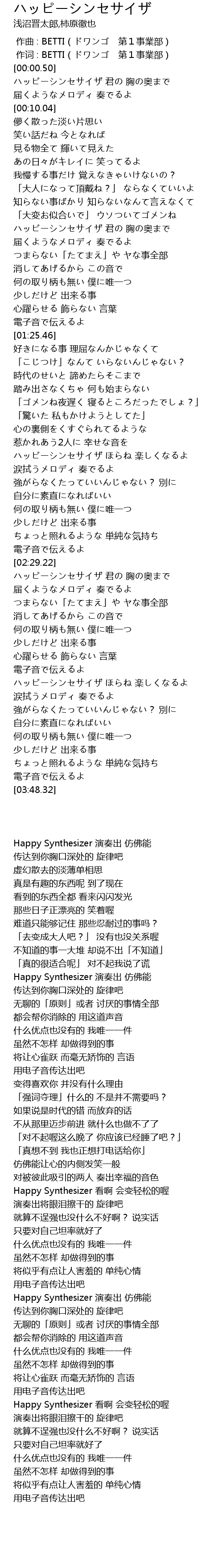 | [01:58.95] | ハッピーシンセサイザ ほらね 楽しくなるよ |