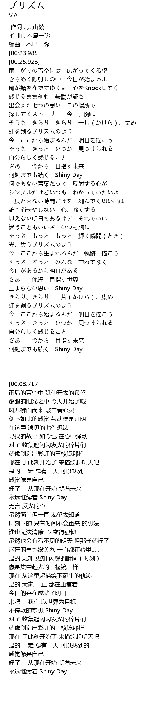 | [04:18.361] | hé chǔ xu Shiny Day |