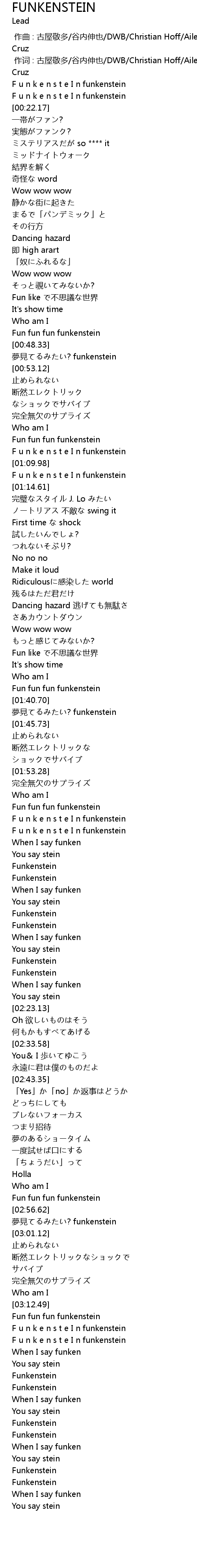 | [00:49.90] | 夢見てるみたい? funkenstein |