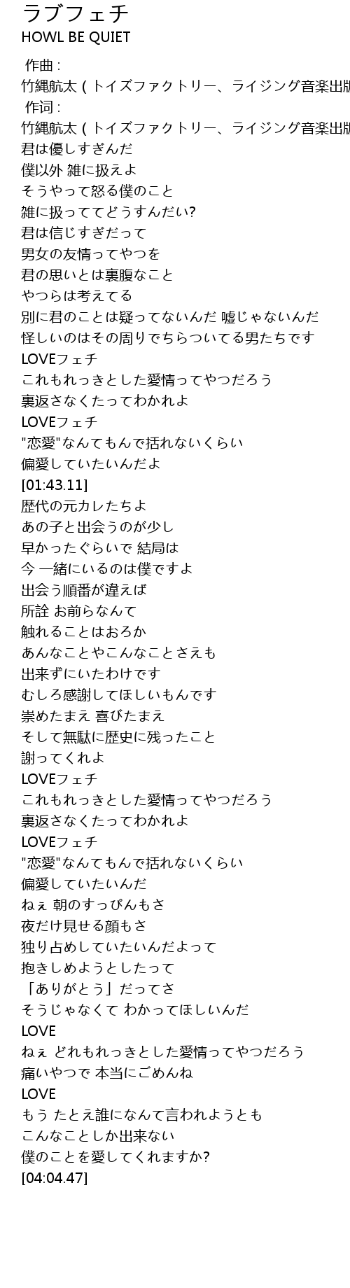 | [03:33.53] | ねぇ どれもれっきとした愛情ってやつだろう |