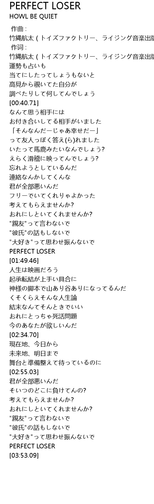 | [01:45.15] | PERFECT LOSER |
