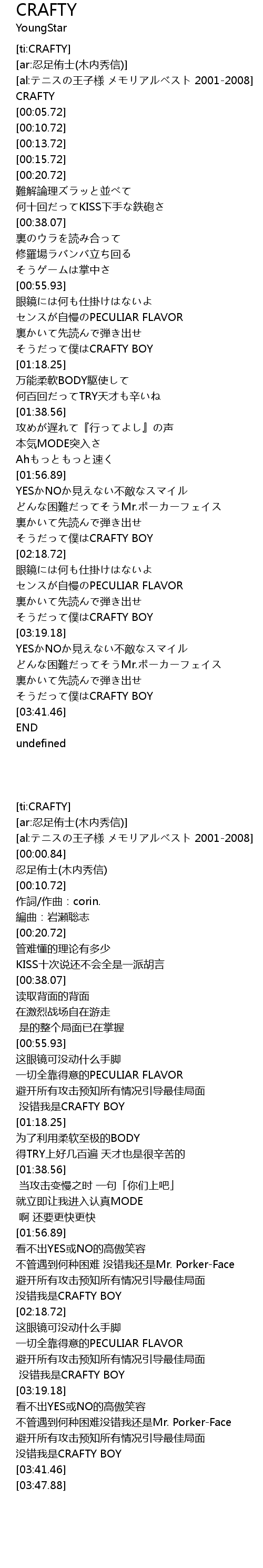 | [02:13.02] | そうだって僕はCRAFTY BOY |