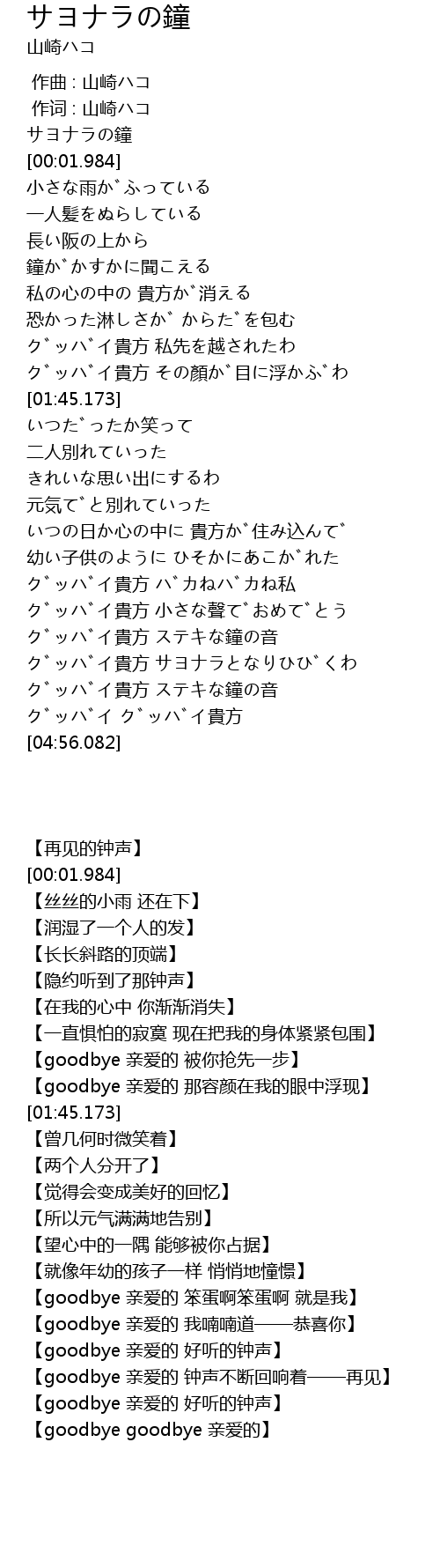 | [03:57.571] | グッバイ貴方 ステキな鐘の音 |