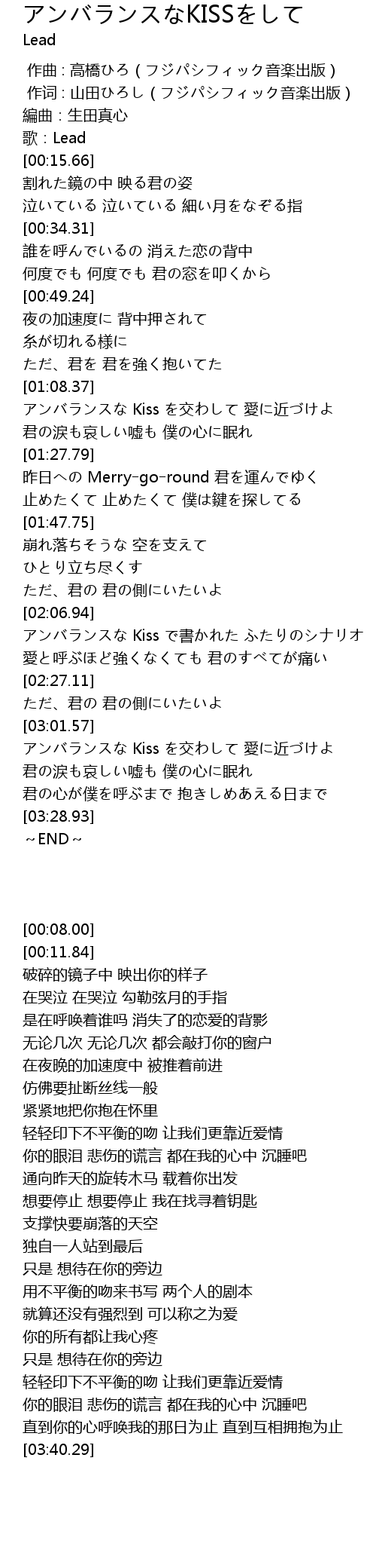 | [00:11.84] | 歌:Lead |