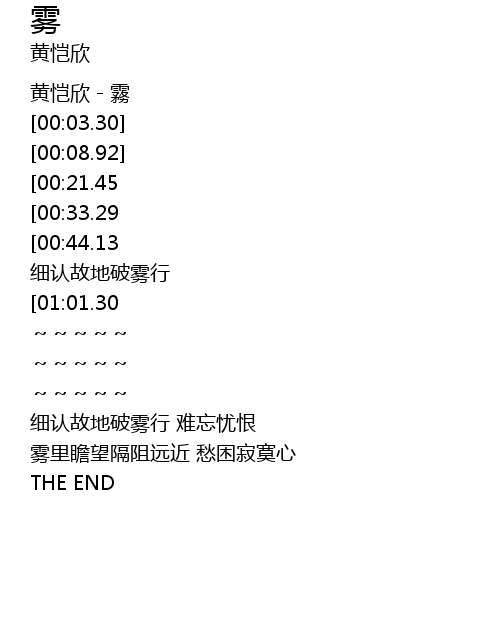 | [00:00.00] | 黄恺欣-霧 |