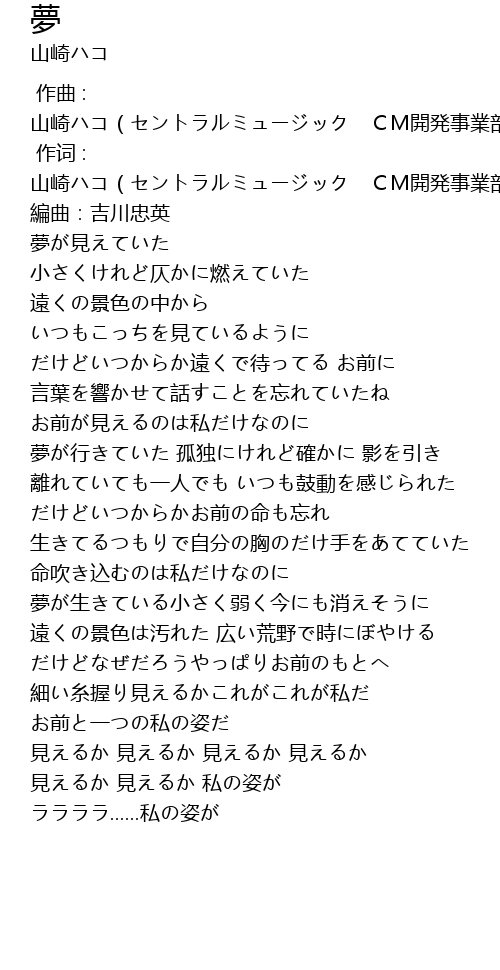 | [00:01.000] | 作词 : 山崎ハコ(セントラルミュージック CM開発事業部) |