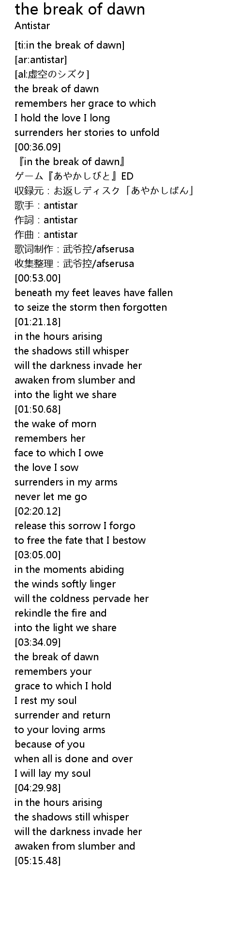 | [00:40.00] | ゲーム『あやかしびと』ED |