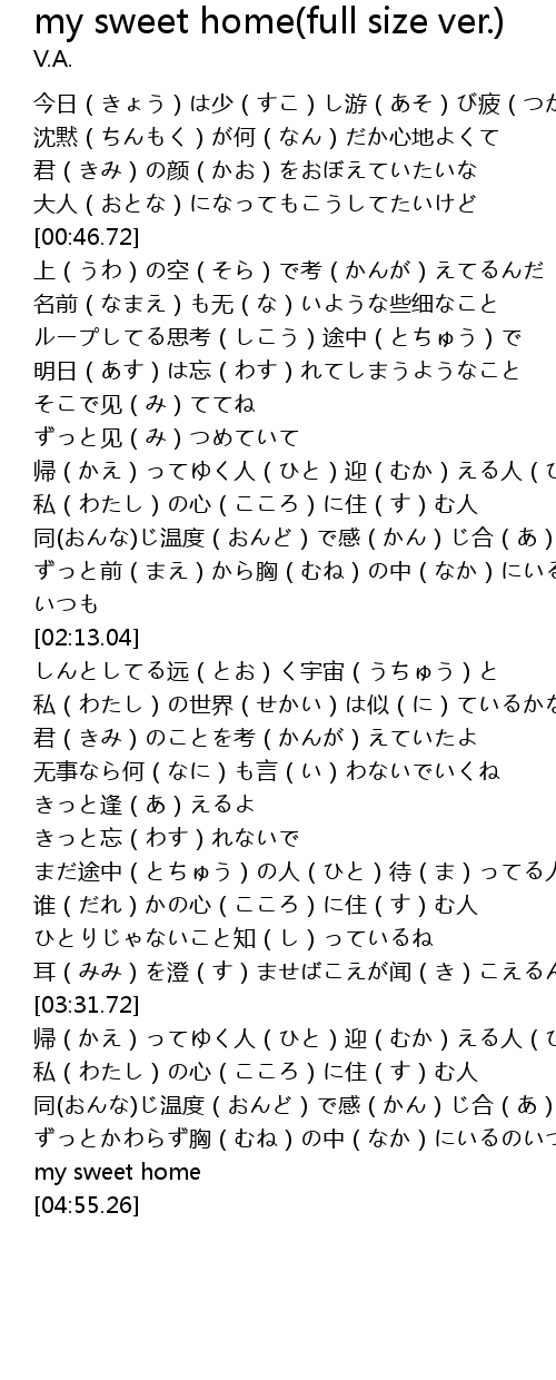 | [04:13.31] | ずっとかわらず胸(むね)の中(なか)にいるのいつも |