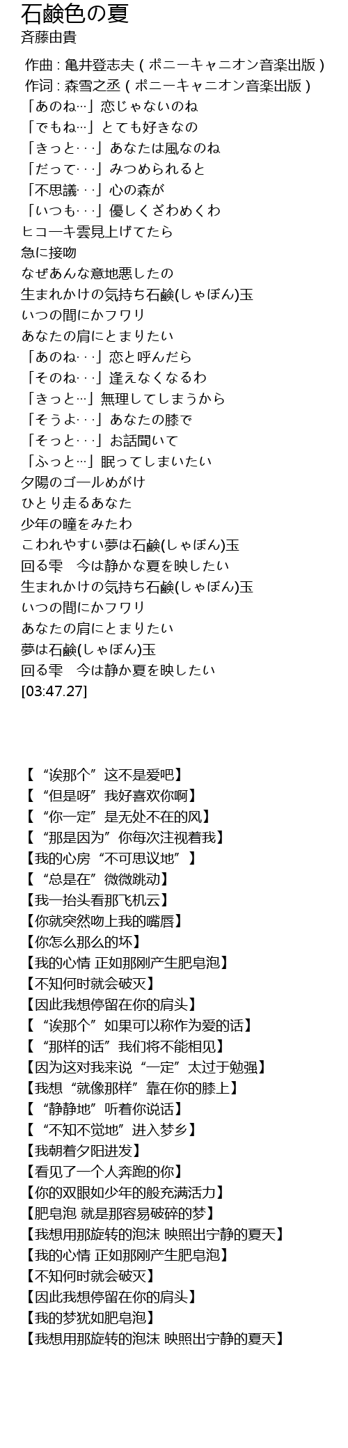 | [03:27.33] | 夢は石鹸(しゃぼん)玉 |
