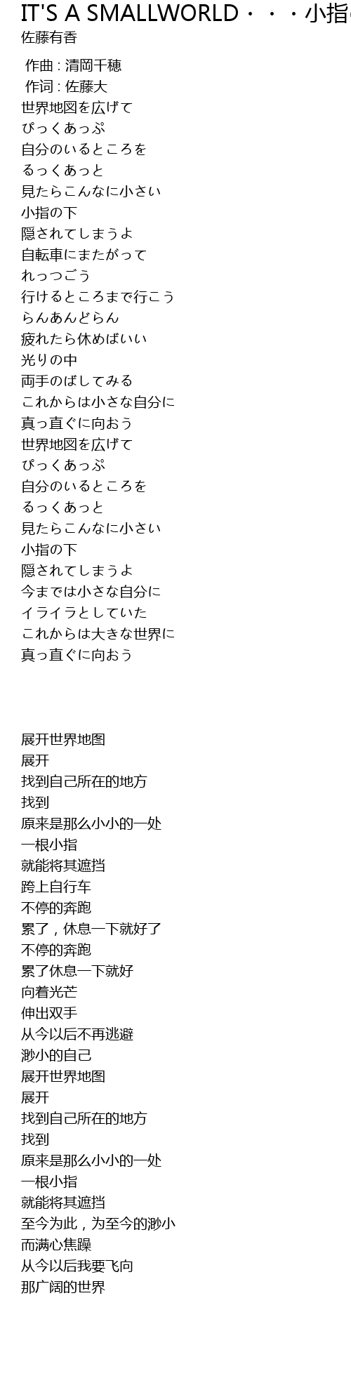 | Song | IT'S A SMALLWORLD・・・小指の下で・・・ |