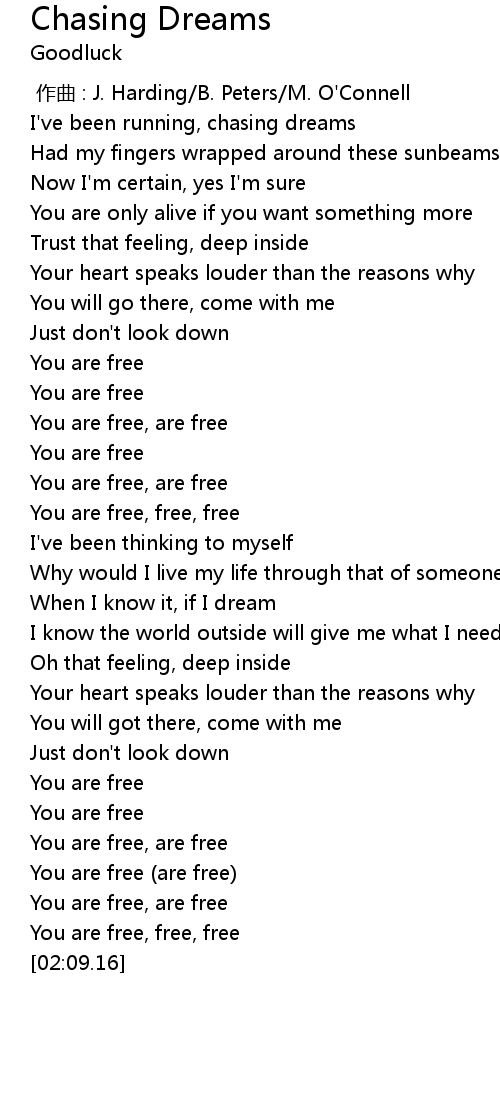 | [00:03.17] | I' ve been running, chasing dreams |
