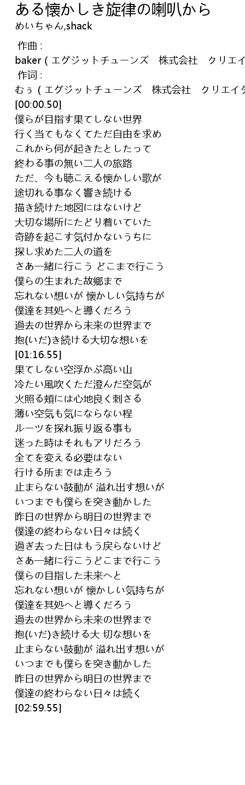| [00:18.87] | 僕らが目指す果てしない世界 |