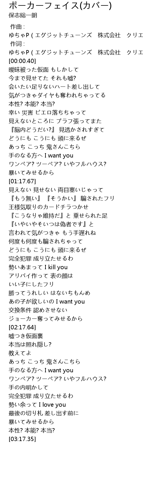 | [01:07.94] | ワンペア? ツーペア? いやフルハウス? |