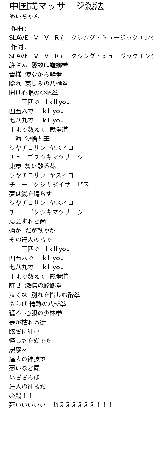 | [00:03.64] | 許さん 愛故に螳螂拳 |