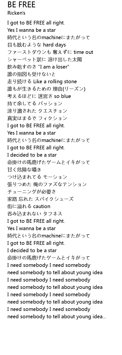 | Song | BE FREE |