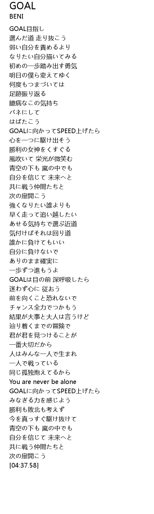 | [03:46.24] | GOAL xiàng SPEED shàng |
