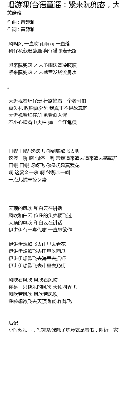 | 风啊风 一直吹 雨啊雨 一直落 | |