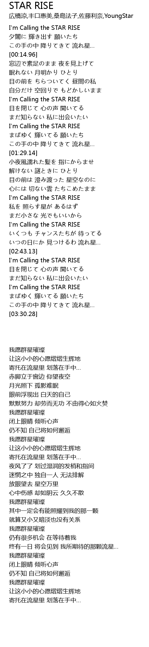 | [03:13.74] | I' m Calling the STAR RISE |