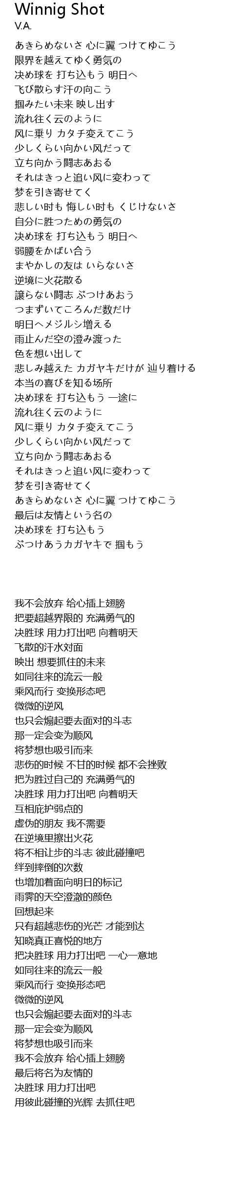 | [00:18] | 决め球を 打ち込もう 明日へ |