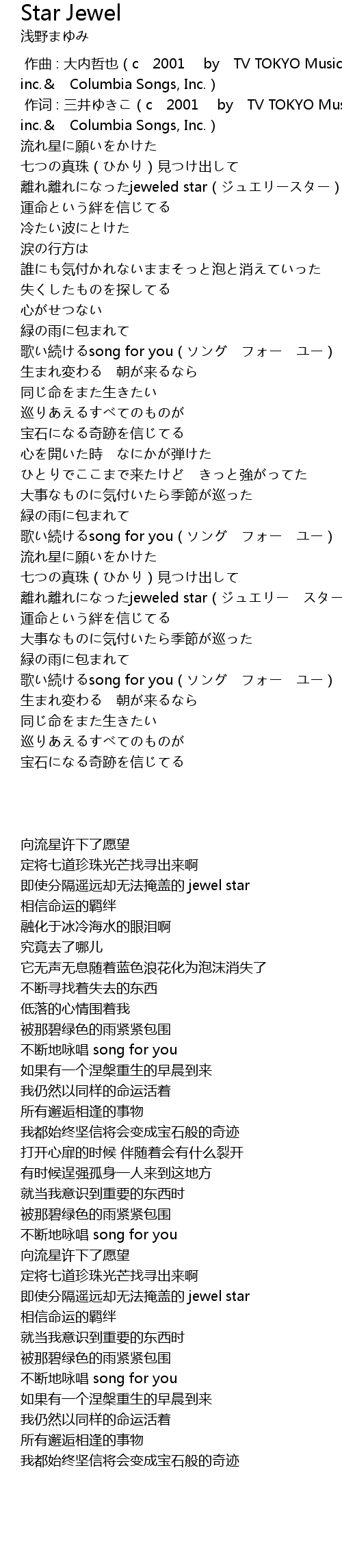 | [02:17.00] | 離れ離れになったjeweled star(ジュエリー スター) |