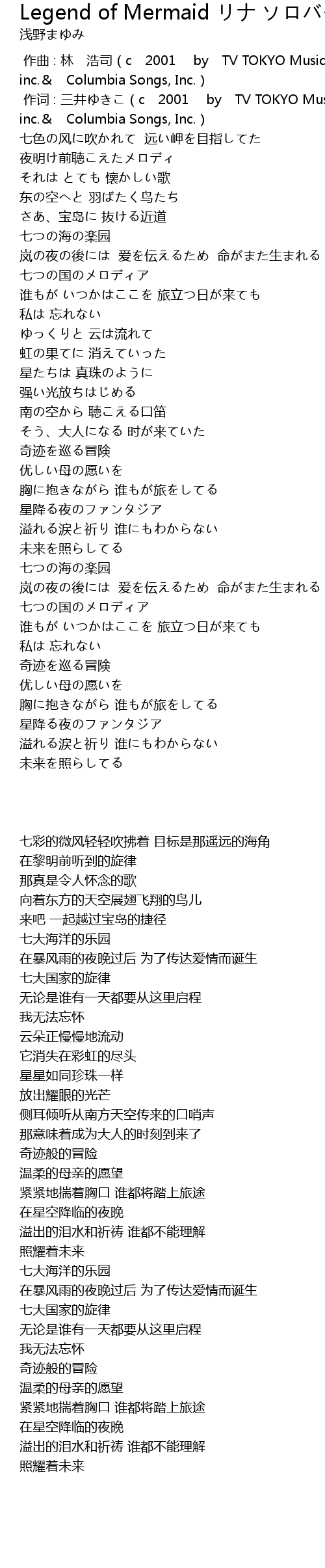 | [00:00.000] | zuò qǔ : lín hào sī c 2001 by TV TOKYO Music, inc. Columbia Songs, Inc. |