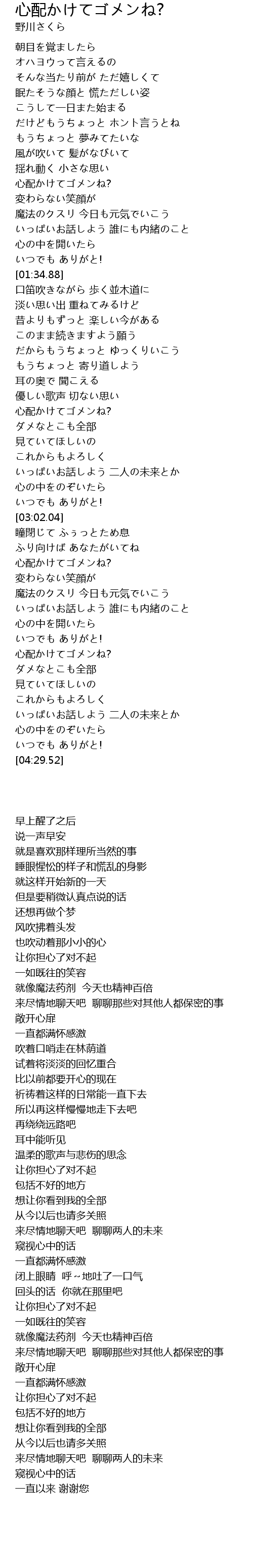 | [03:58.76] | 心配かけてゴメンね? |