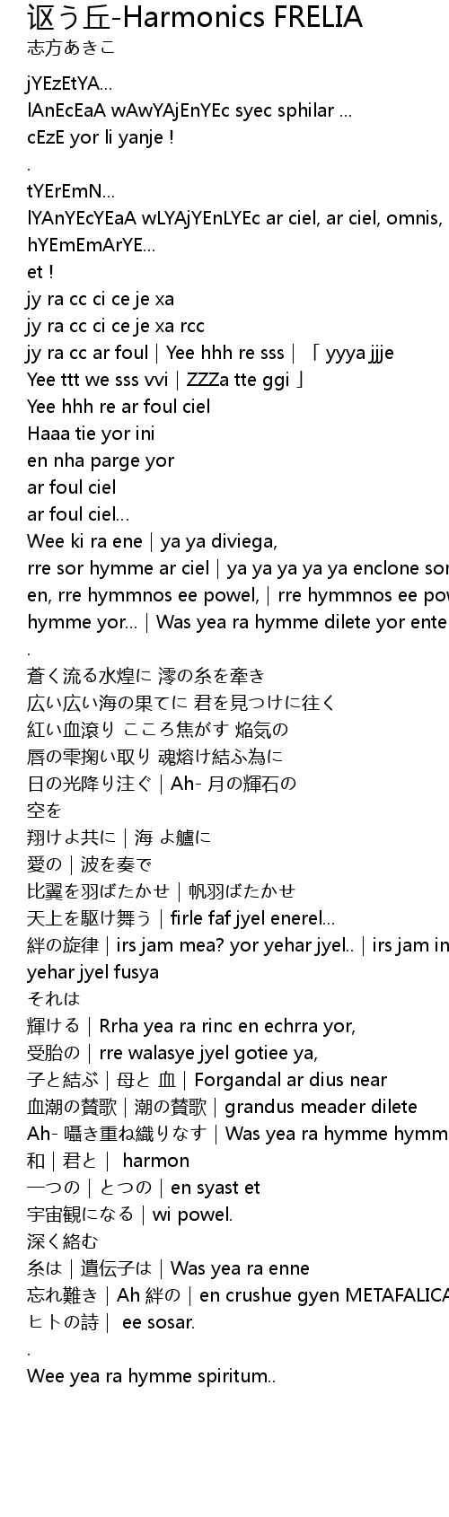 | [02:02.61] | Ah- 囁き重ね織りなす|Was yea ra hymme hymmnos |