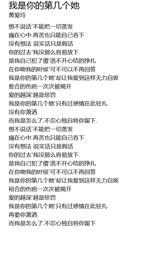 | [03:28.13] | 我是你的第几个她'却让我爱到这样无力自拔 |