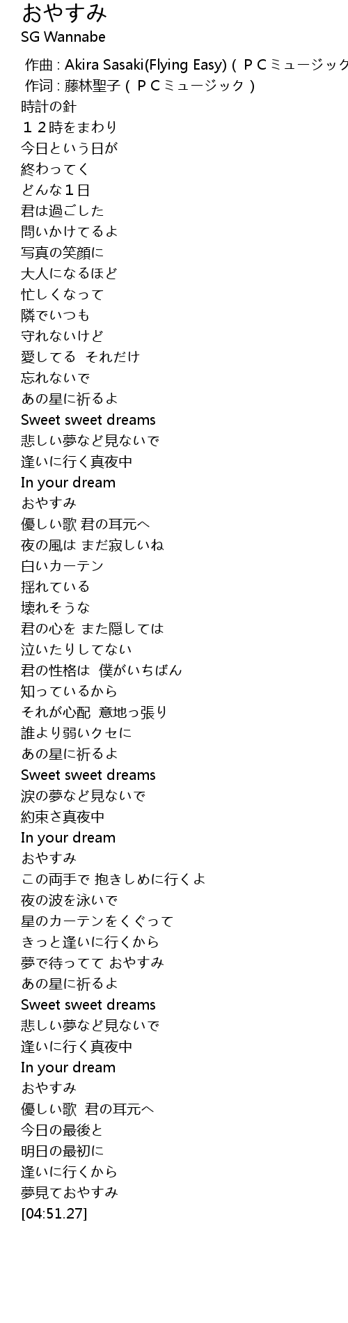 | [04:13.68] | 夢見ておやすみ |