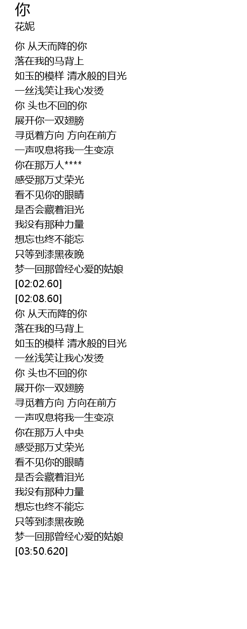 | [03:04.910] | ni zai na wan ren zhong yang |