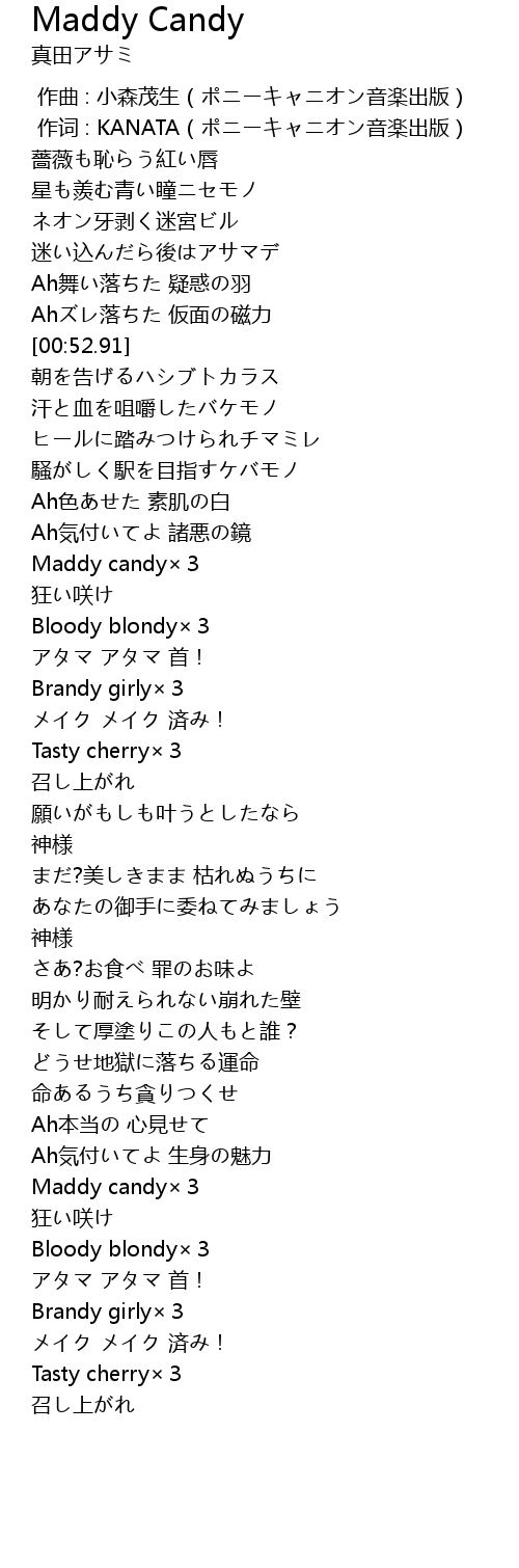 | [00:45.95] | Ahズレ落ちた 仮面の磁力 |