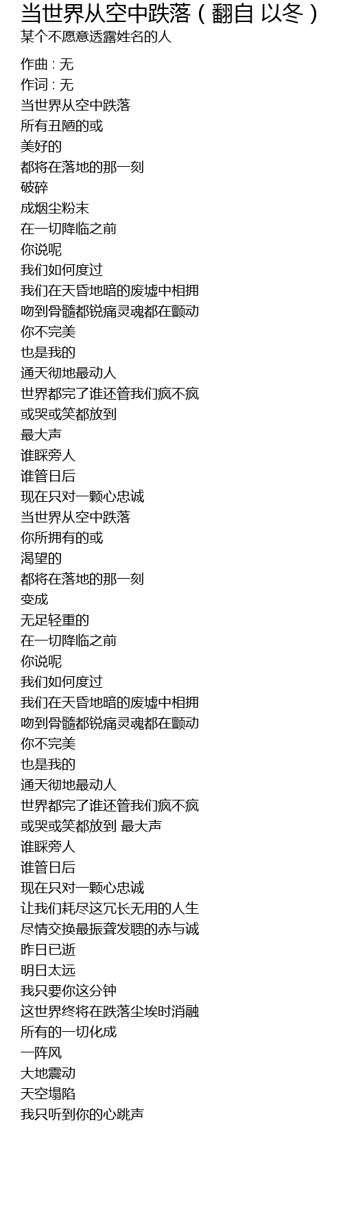 | Song | 当世界从空中跌落(翻自 以冬) |