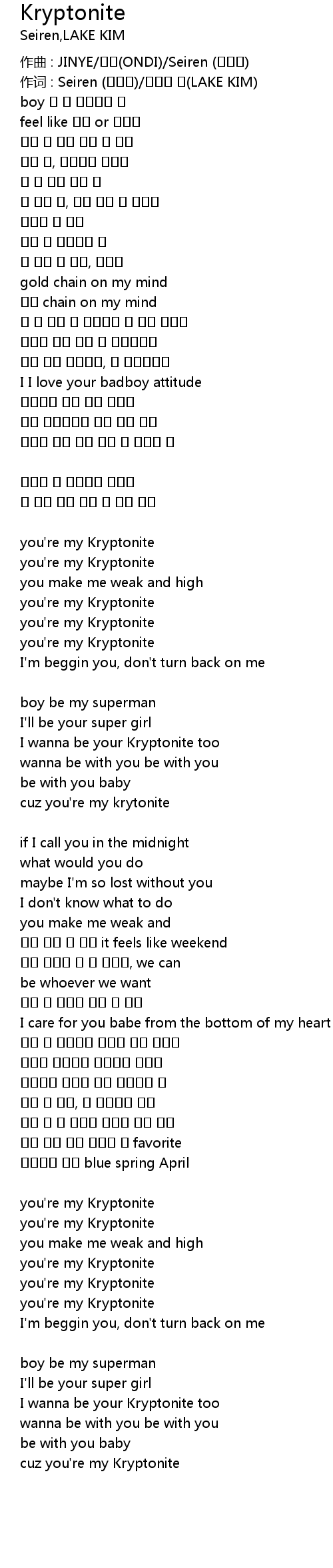| 作词 : Seiren (세이렌)/레이크 킴(LAKE KIM) | |
