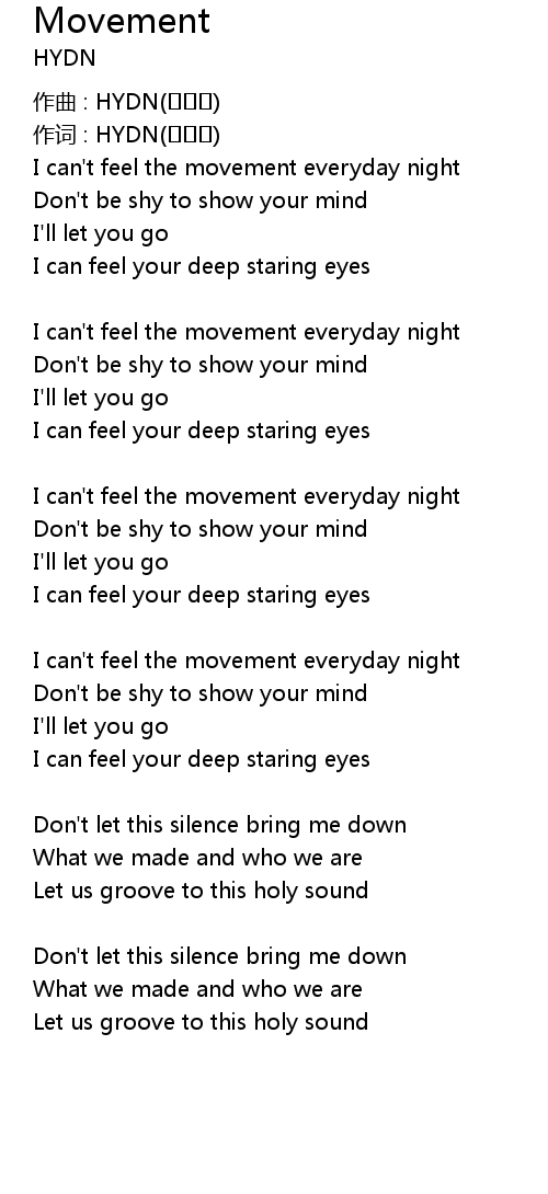 | I can' t feel the movement everyday night | |