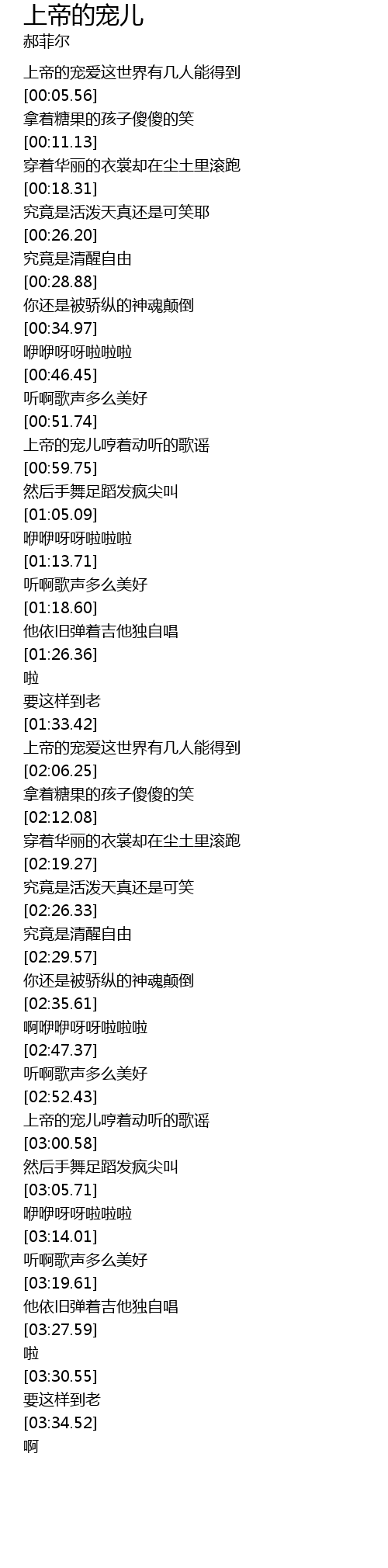 | [02:54.97] | shàng dì de chǒng ér hēng zhe dòng tīng de gē yáo |
