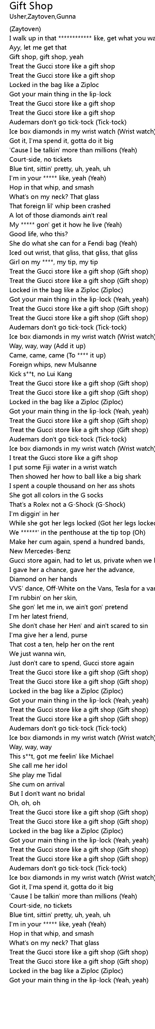 | [03:01.63] | Treat the Gucci store like a gift shop (Gift shop) |