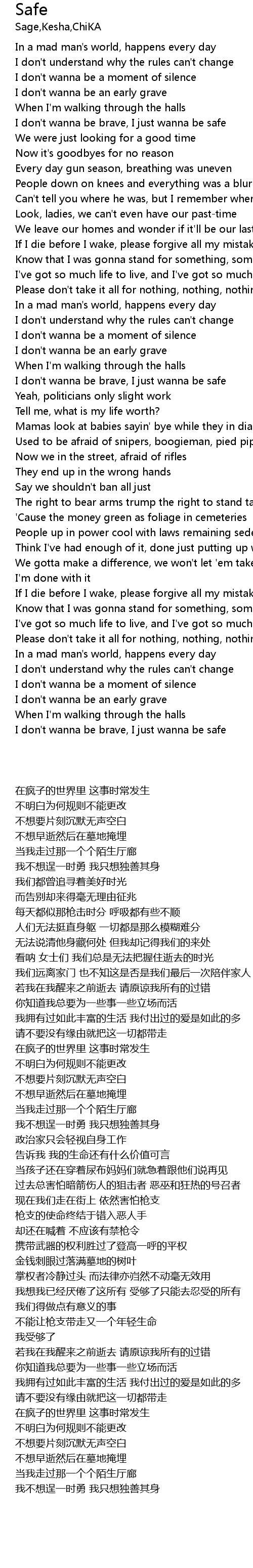 | [00:21.30] | I don't wanna be brave, I just wanna be safe |