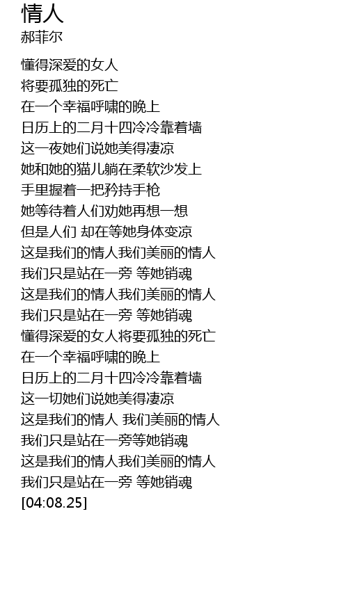 | [02:58.23] | 懂得深爱的女人将要孤独的死亡 |