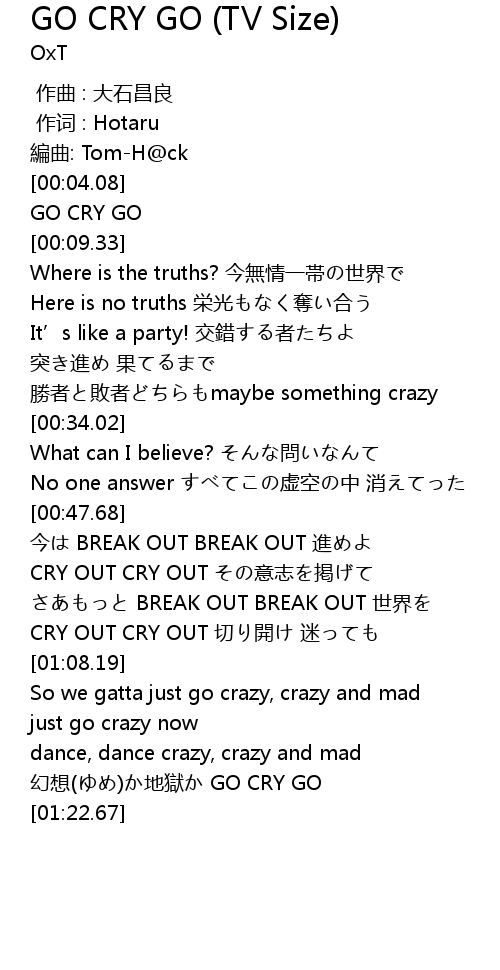 | [01:16.13] | 幻想(ゆめ)か地獄か GO CRY GO |