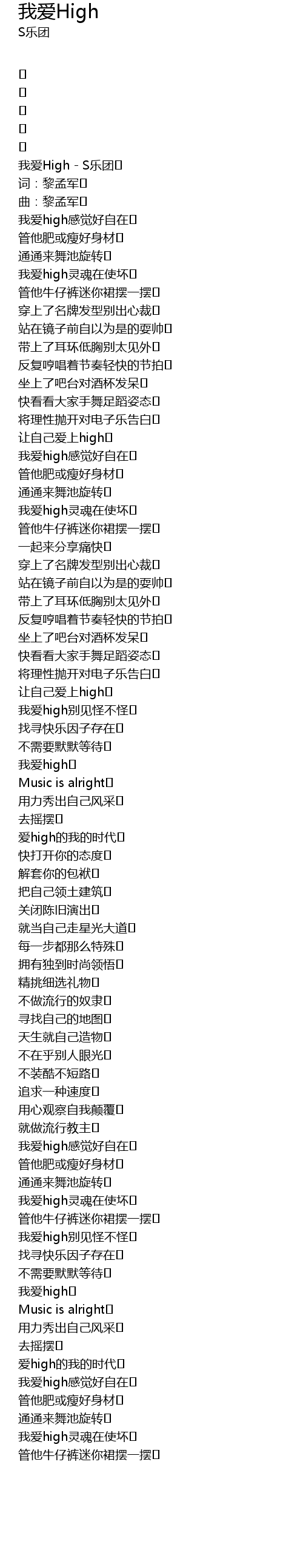 | 我爱High - S乐团 | |