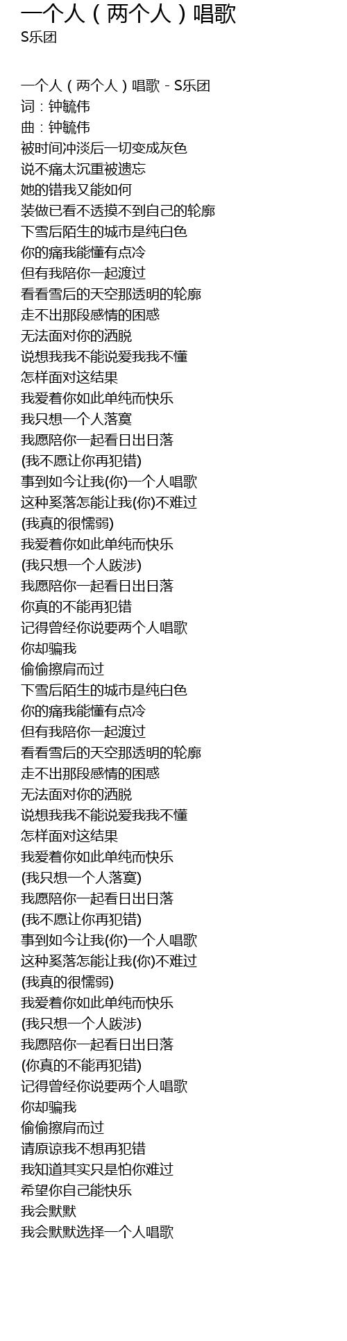 | yi ge ren liang ge ren chang ge S yue tuan | |