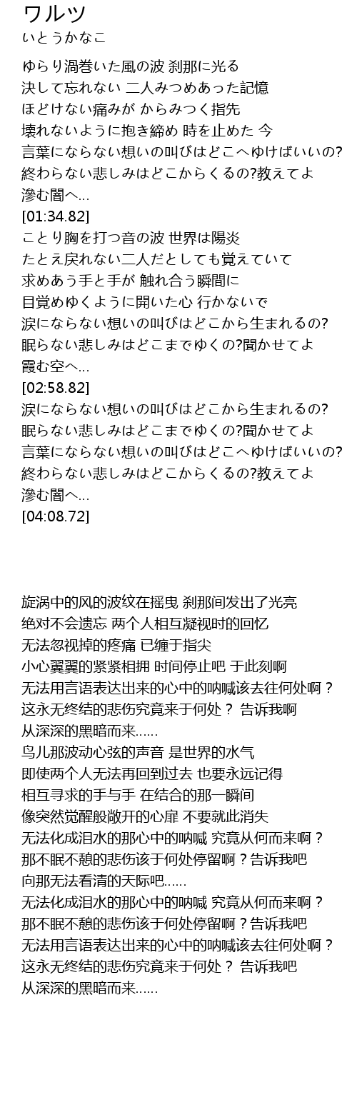 | [01:06.26] | 言葉にならない想いの叫びはどこへゆけばいいの? |