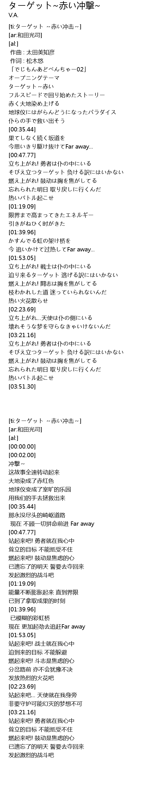 | [00:57.14] | そびえ立つターゲット 负ける訳にはいかない |