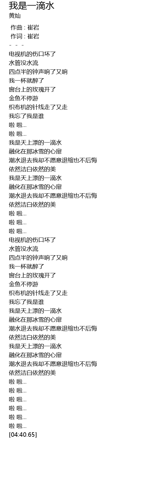 | [01:44.20] | wǒ shì tiān shàng piào de yī dī shuǐ |
