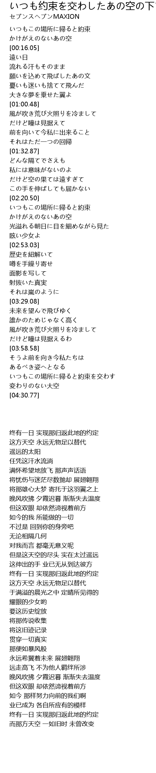 | [04:15.04] | いつもこの場所に帰ると約束を交わす |