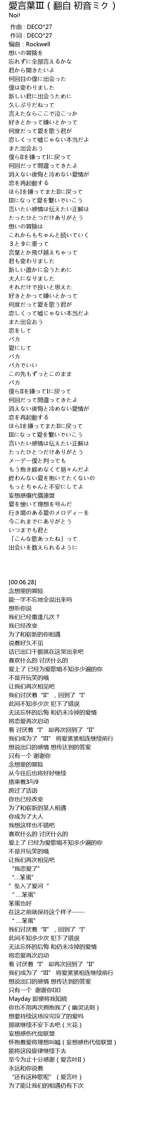 | [00:00.000] | zuò qǔ : DECO 27 |